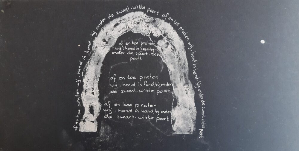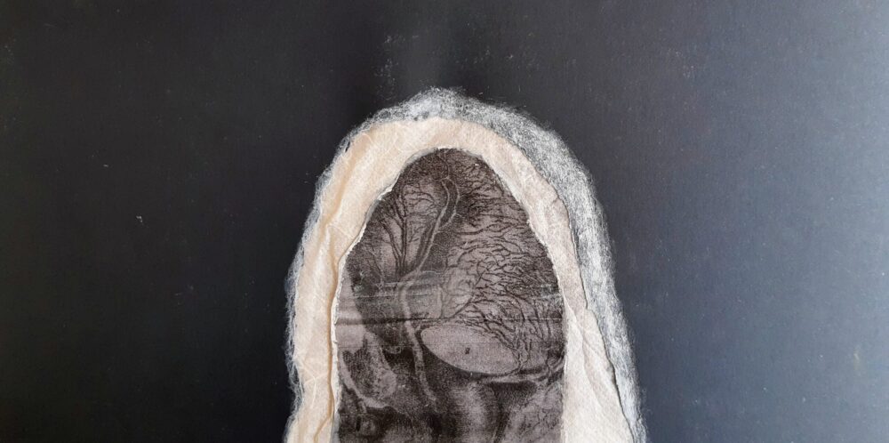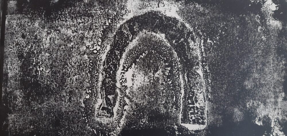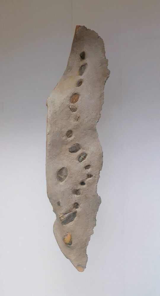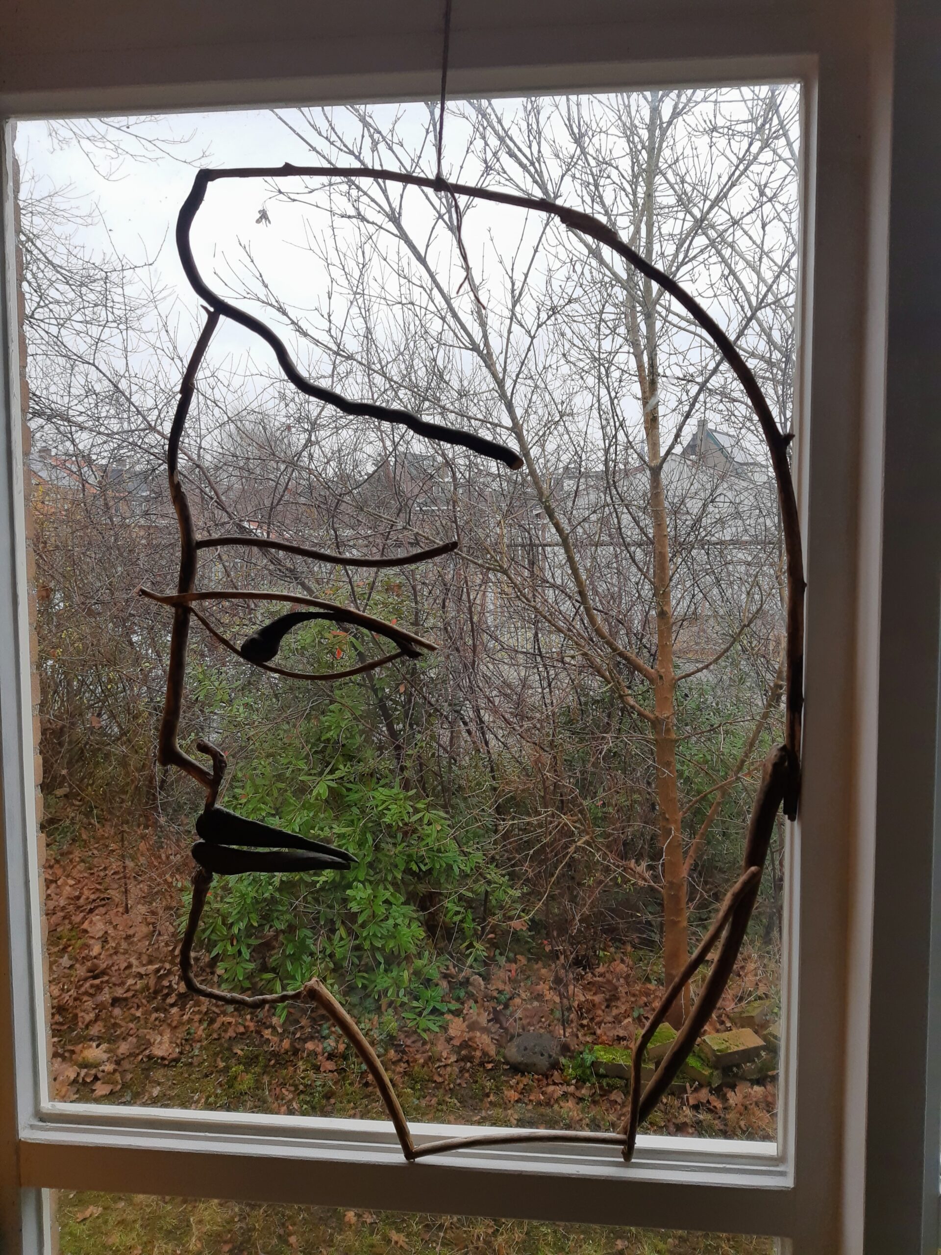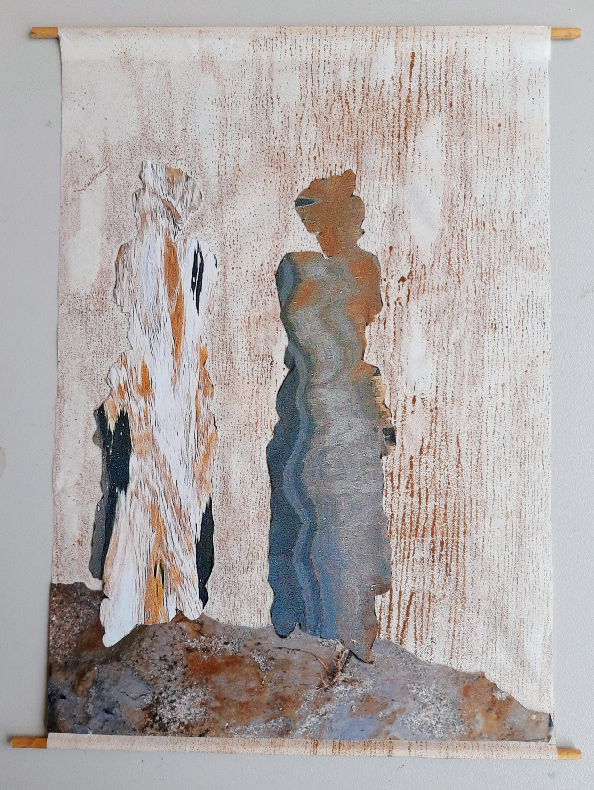 Het werk dat in het kunsthuis hangt, maakt deel uit van een serie. Ik vond een stuk aluminium in de vorm van een vrouw aan de oever van de rivier. Deze vorm gebruikte ik voor de serie van zes werken.