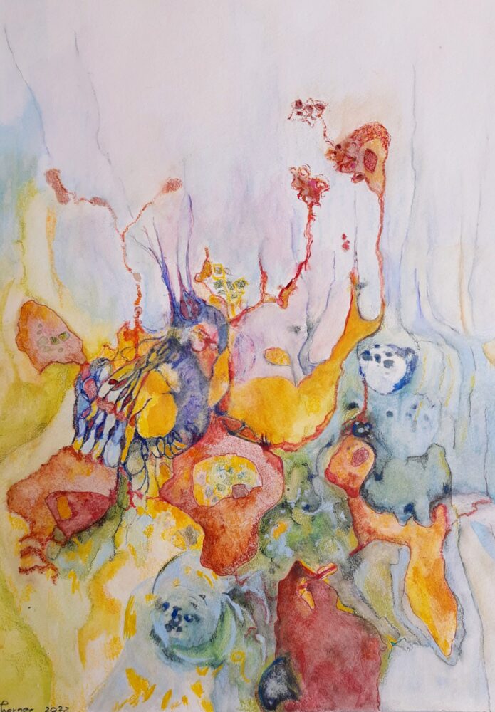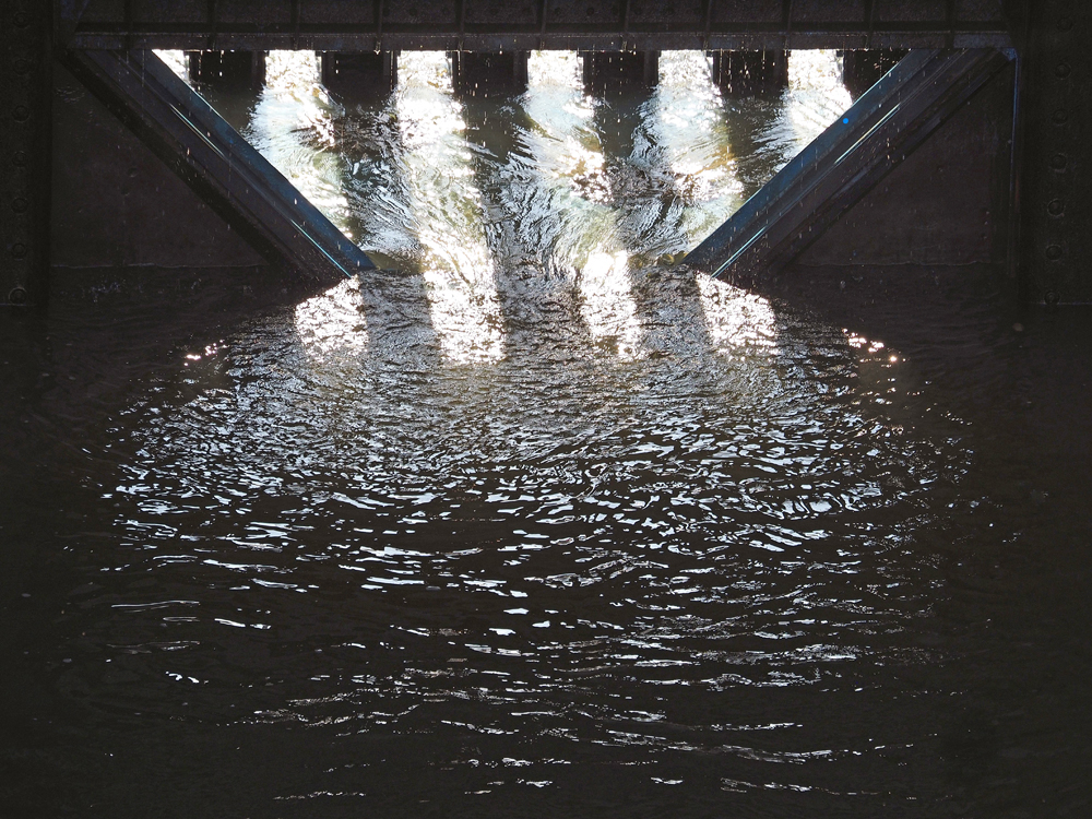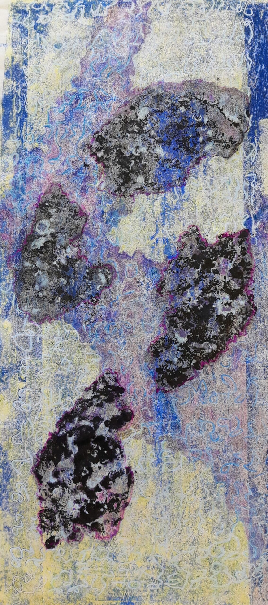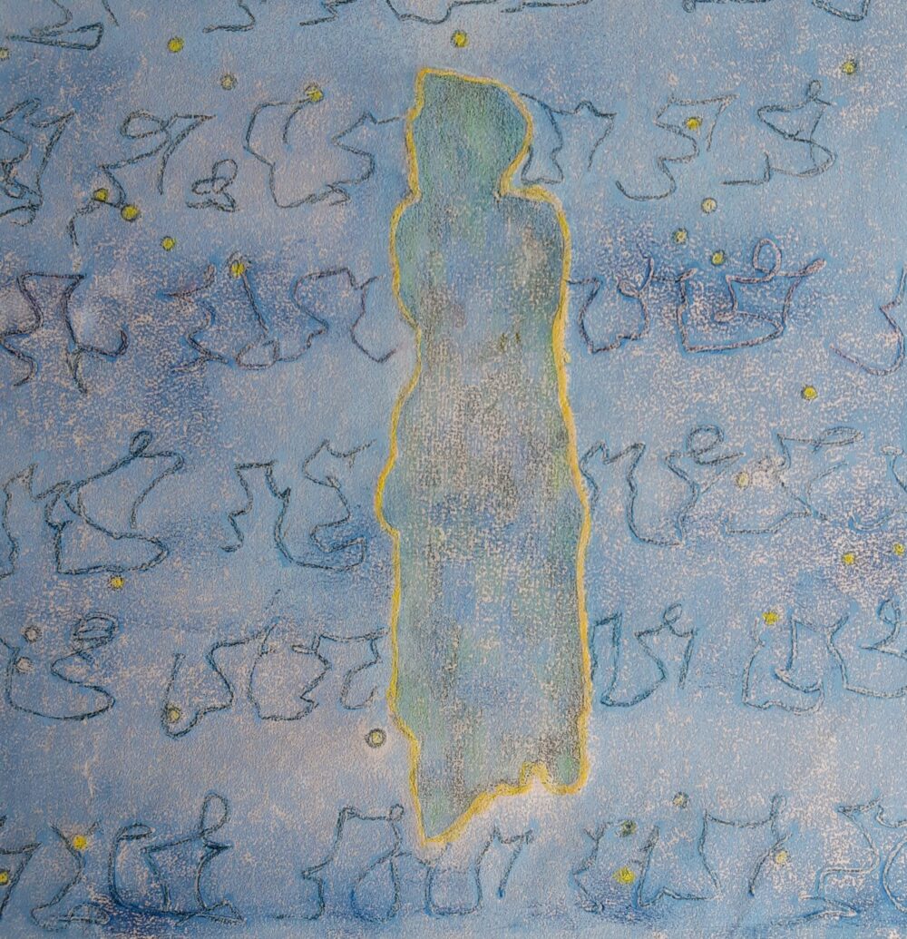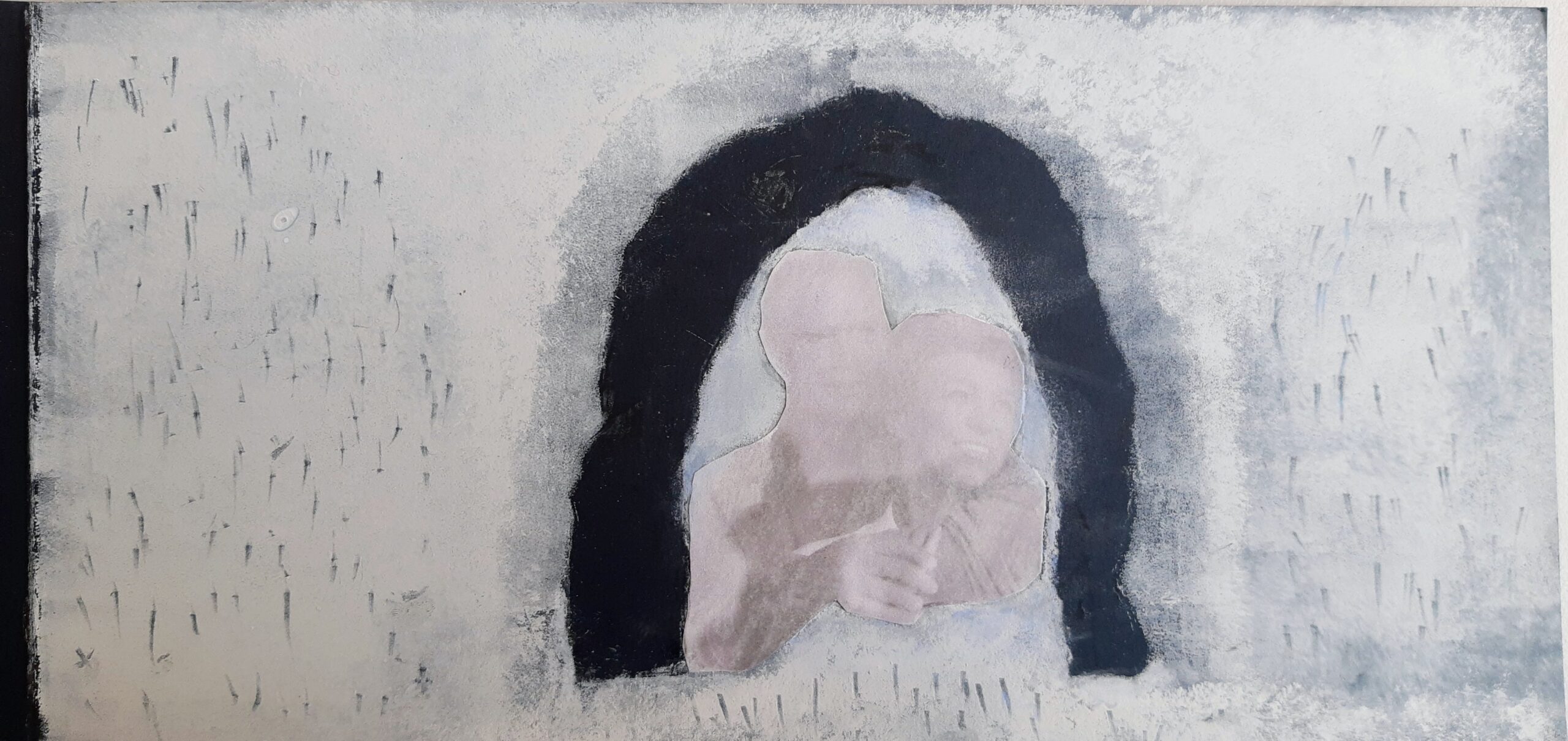 Het werk dat in het kunsthuis hangt, maakt deel uit van een serie. Ik vond een stuk aluminium in de vorm van een vrouw aan de oever van de rivier. Deze vorm gebruikte ik voor de serie van zes werken.